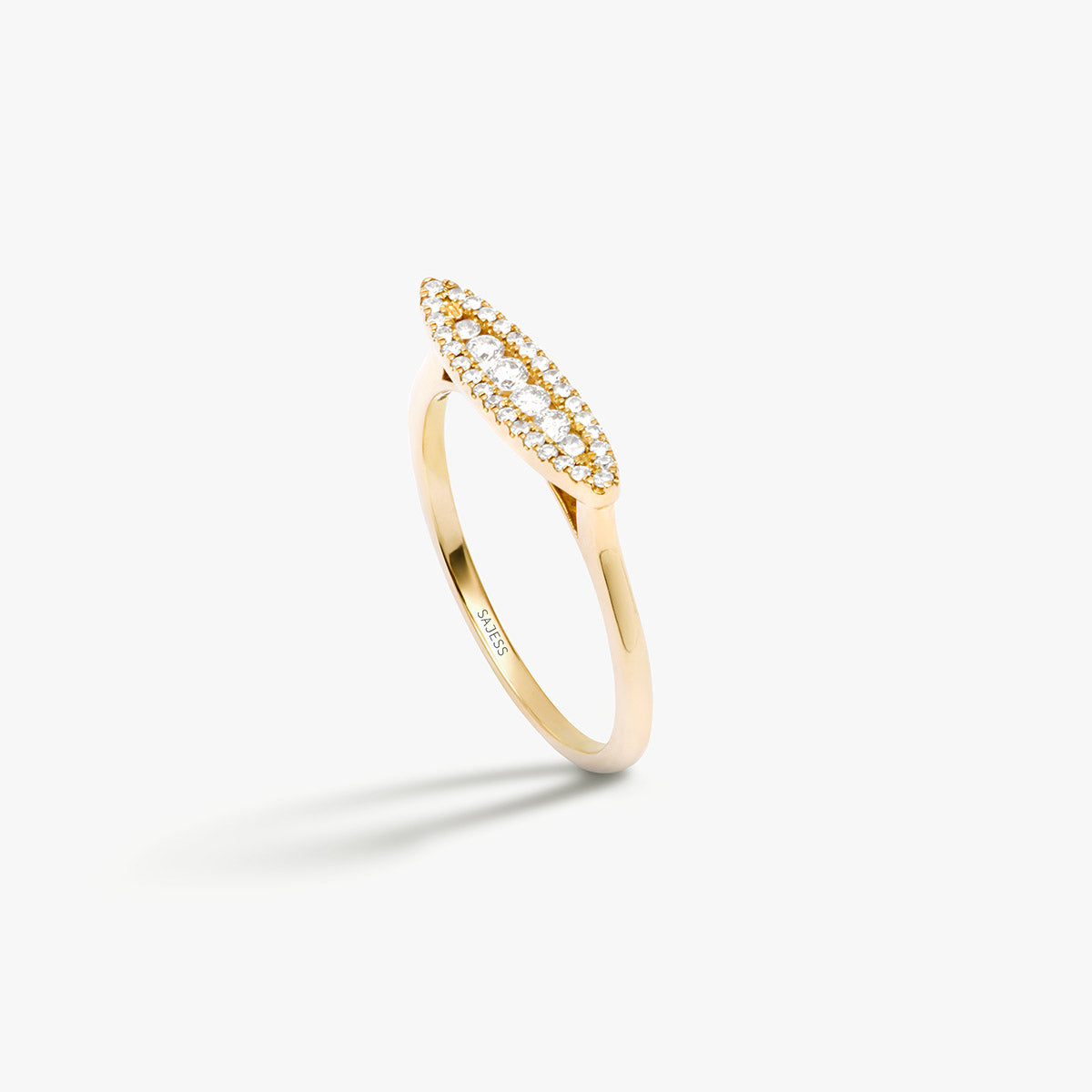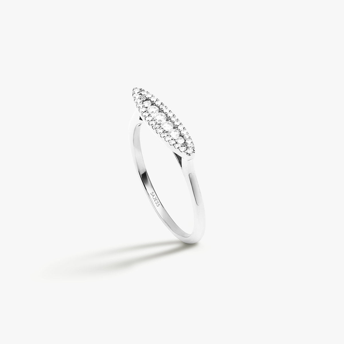 L'élégance moderne dans sa forme la plus pure. La bague Augustine au design minimaliste est en forme de chevalière et se distingue par un pavage subtil de 36 diamants, apportant éclat et raffinement à chaque mouvement.