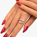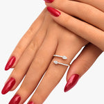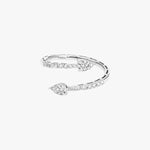 La bague Elena, en or au design ouvert, séduit par son allure graphique et sa brillance éclatante. Pavée de diamants, elle se termine par deux motifs en pointe finement sertis, qui semblent se frôler sans jamais se toucher — un jeu de tension élégante et moderne.