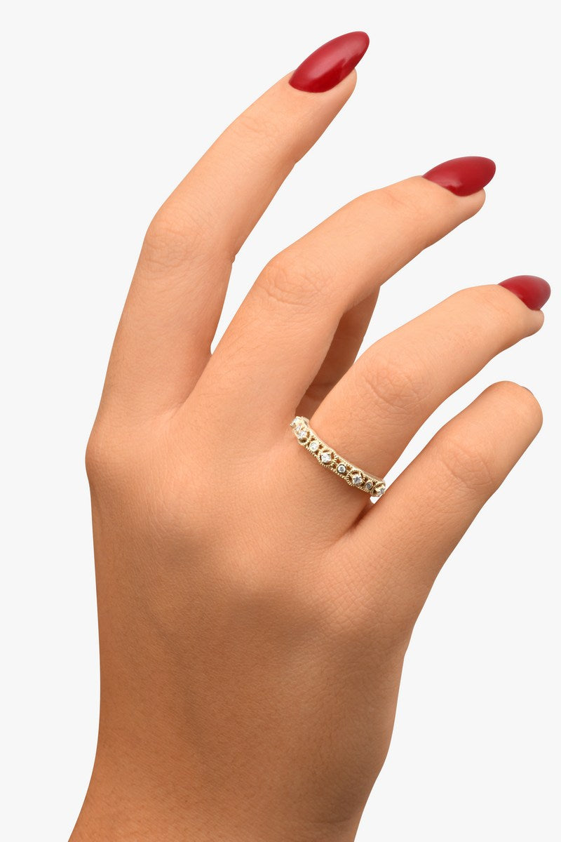 La bague Lina, en or, séduit par son élégance intemporelle et l’exceptionnel travail de joaillerie qui la compose.