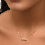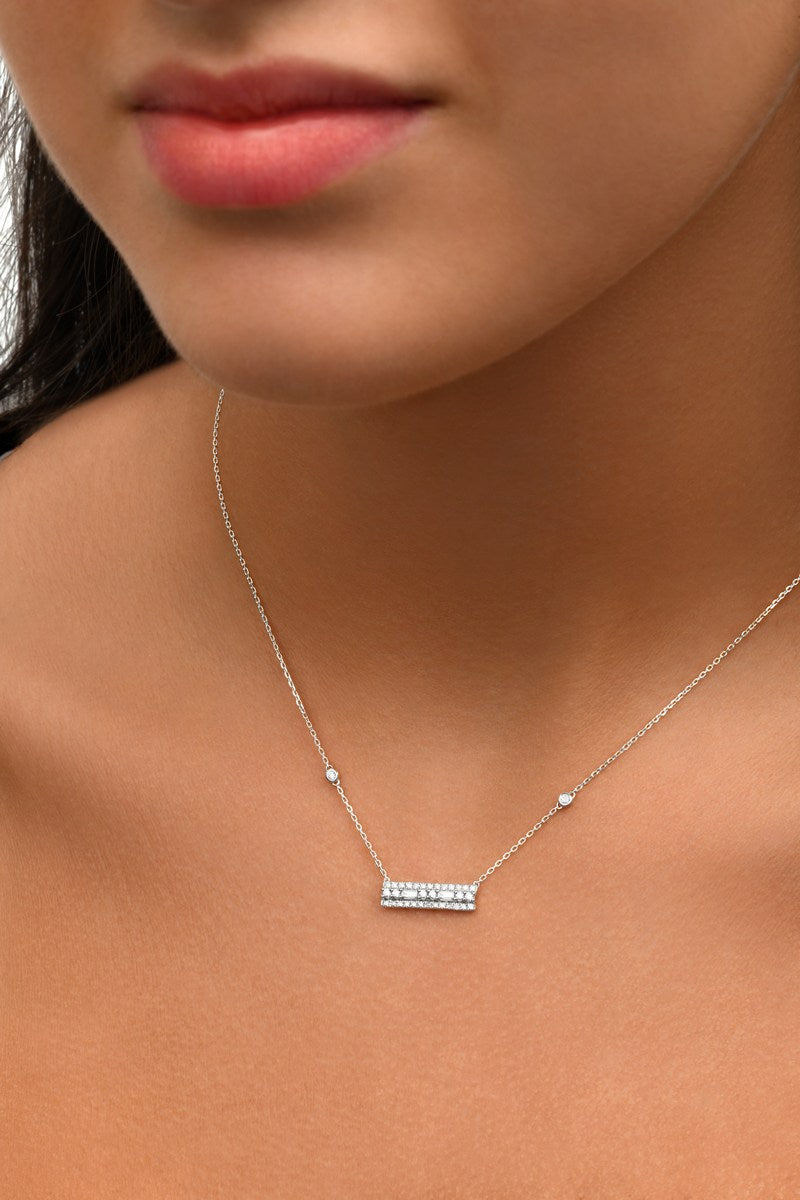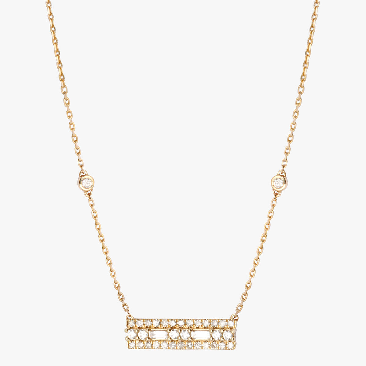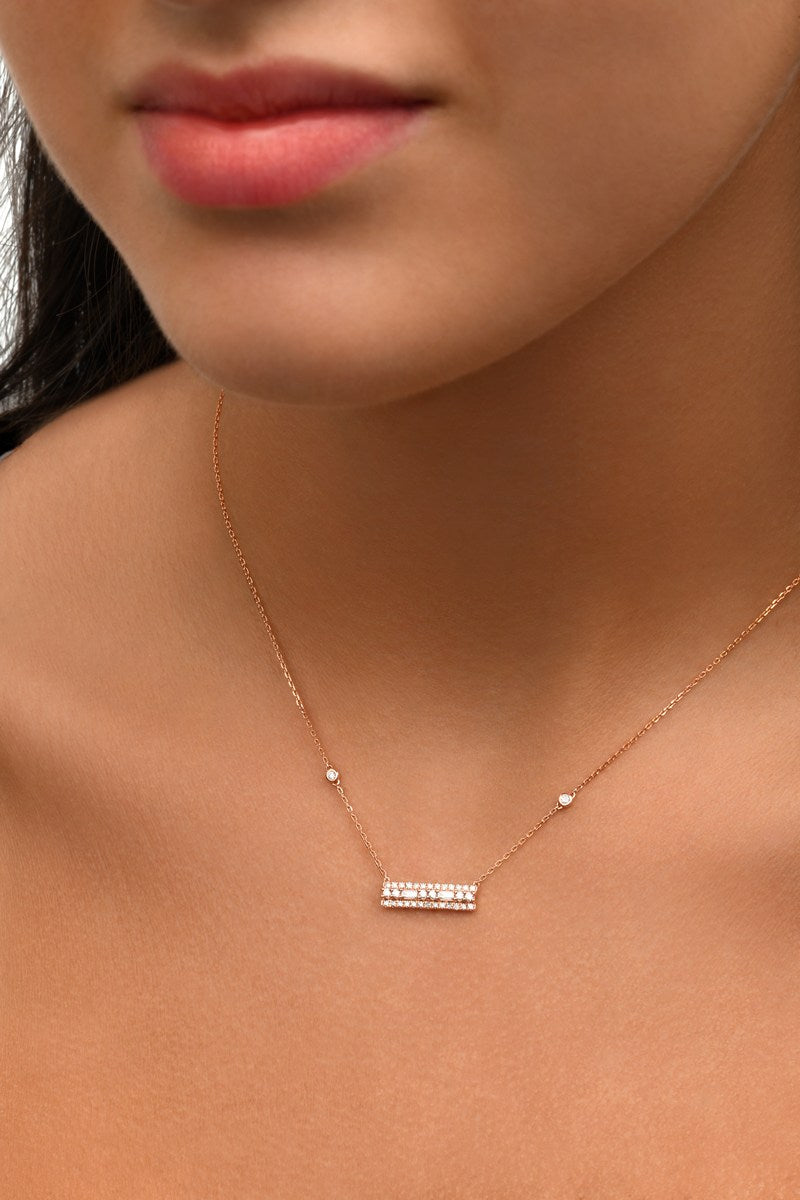 Le collier Anne-Laure séduit par sa plaque rectangulaire subtilement ornée de diamants.